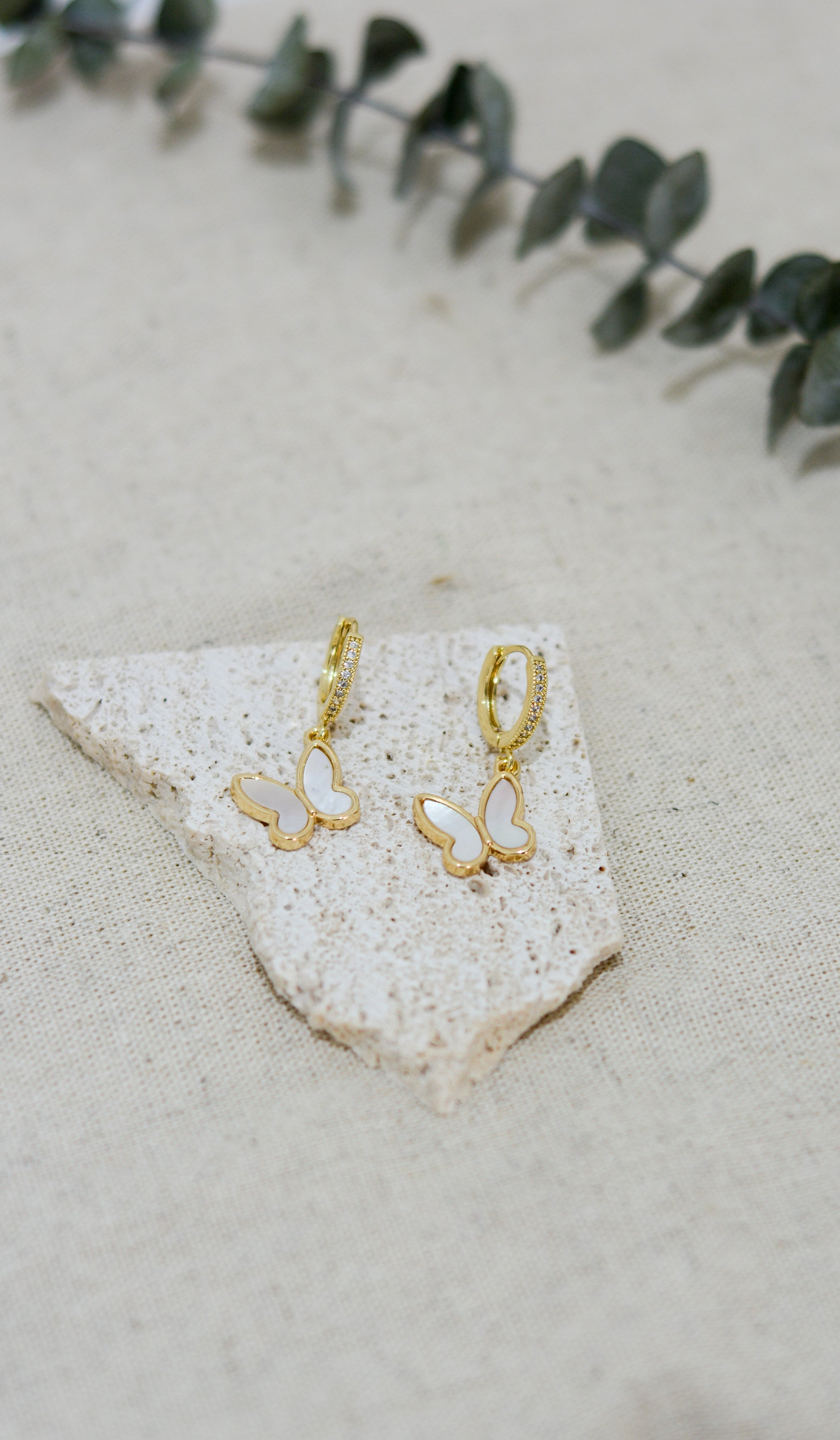 Aretes hechos en madre perla, zirconias y chapa de oro de