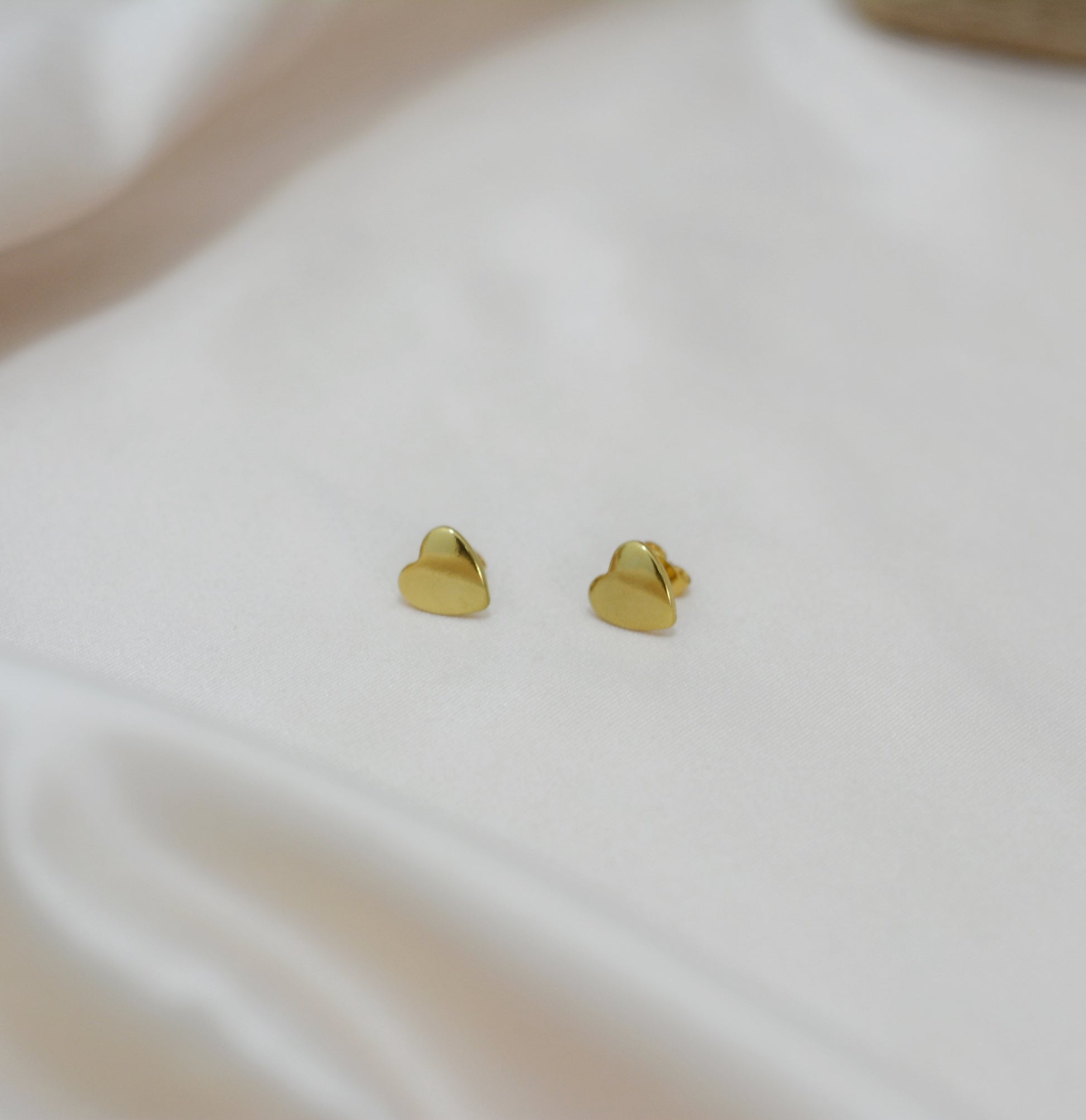 DESCRIPCIÒN Y MATERIAL: Aretes corazón de 1 cm, hechos en chapa de oro de 24 kilates y acero inoxidable.