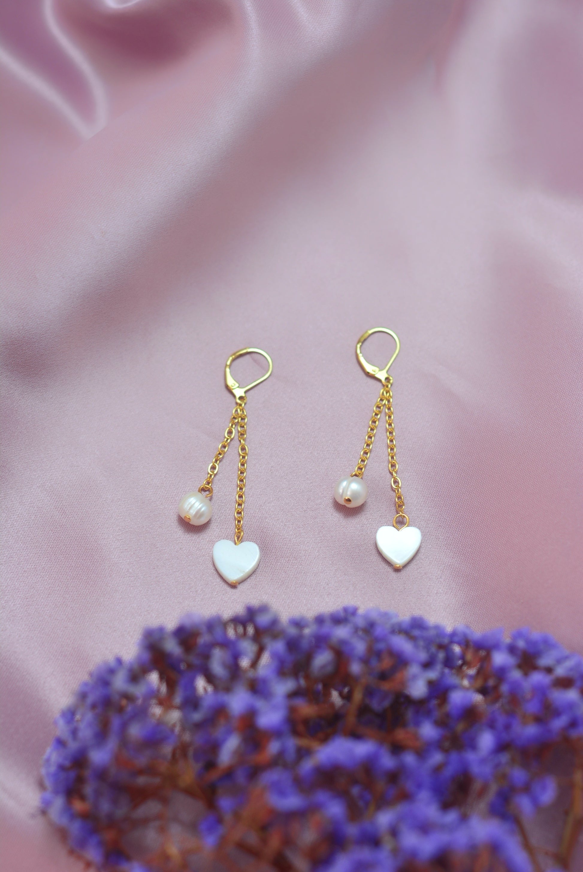 Aretes corazón y perla