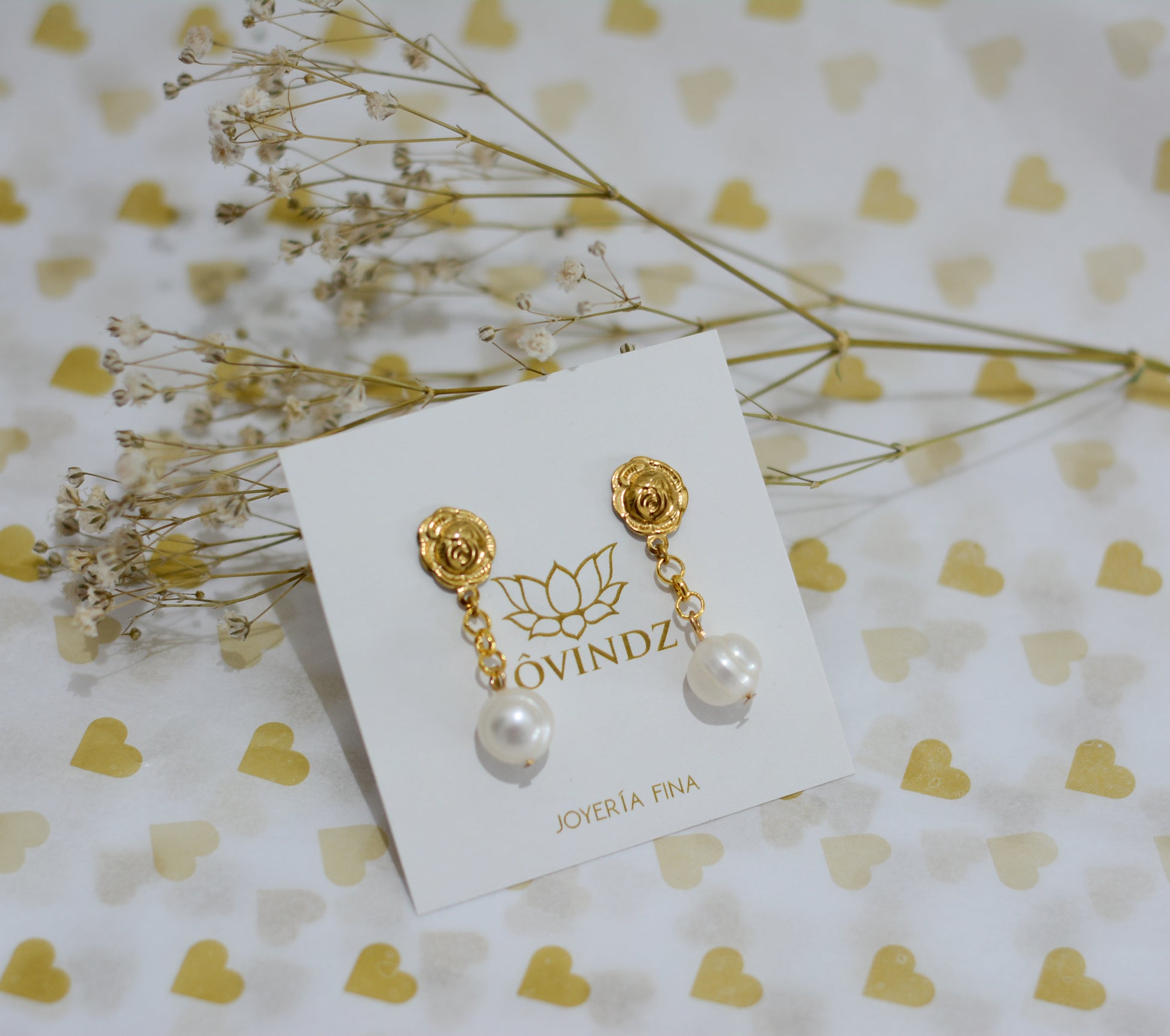 DESCRIPCIÓN: Aretes hechos en perla de rio y chapa de oro de 24 kilates.