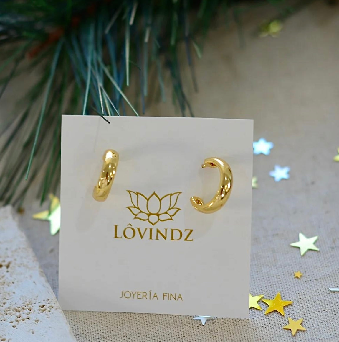 DESCRIPCIÓN: Arracadas de 18mm, hechas en chapa de oro de 18 Kilates.