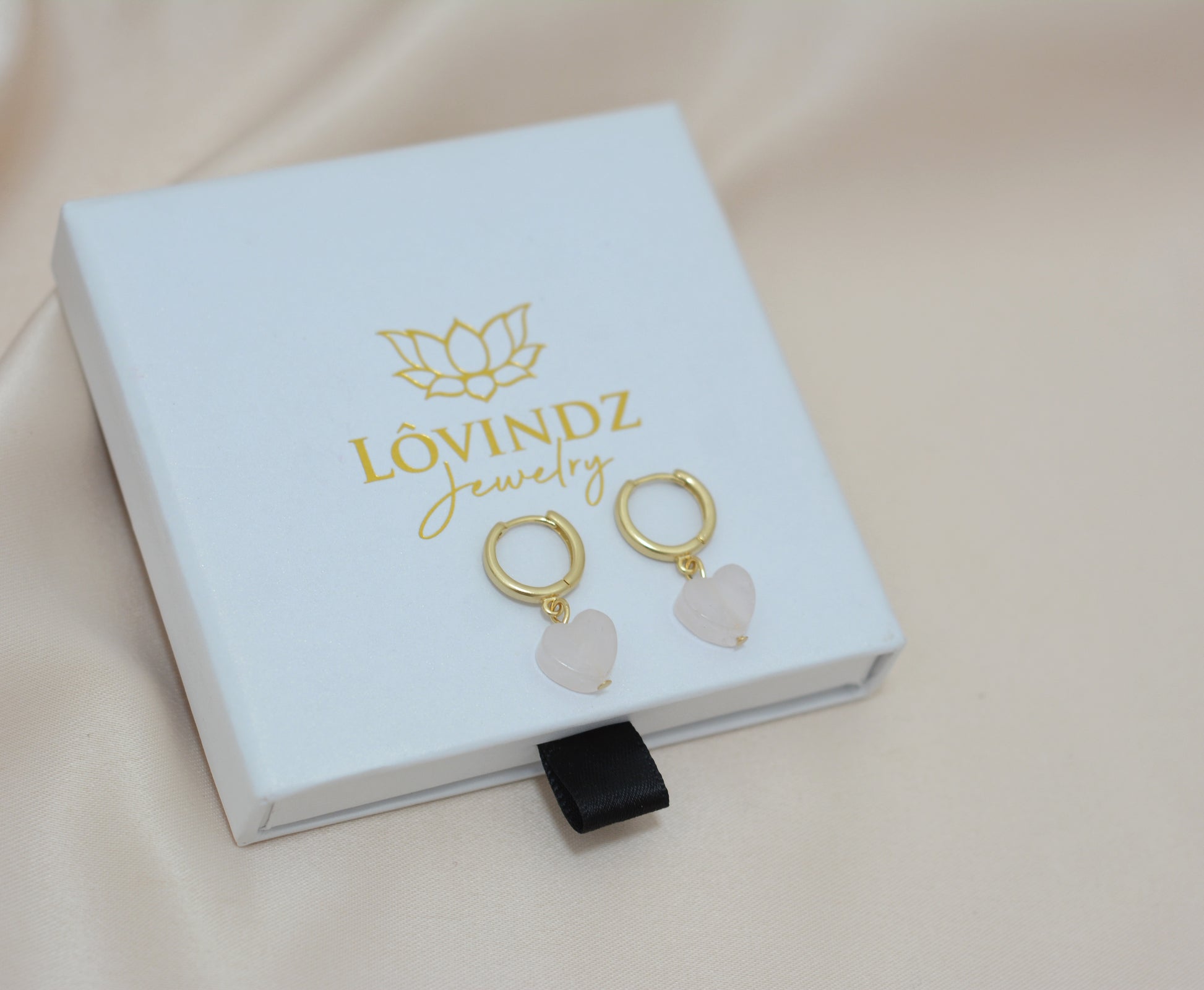 DESCRIPCIÒN Y MATERIAL: Aretes hechos en cuarzo rosa y chapa de oro de 24 kilates.