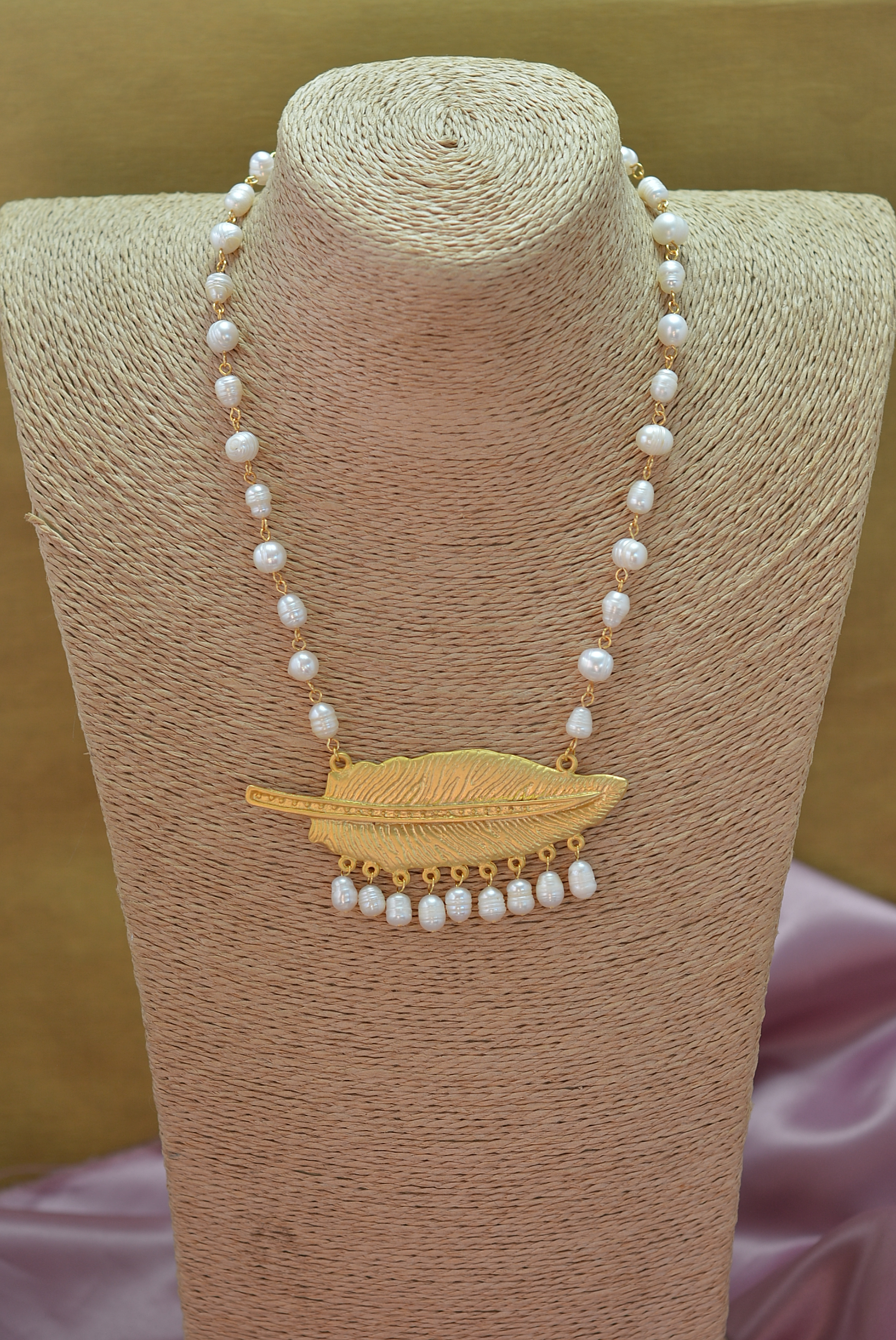 Juego de collar y aretes hechos en perla de río calidad premium y chapa de oro de 24 kilates.