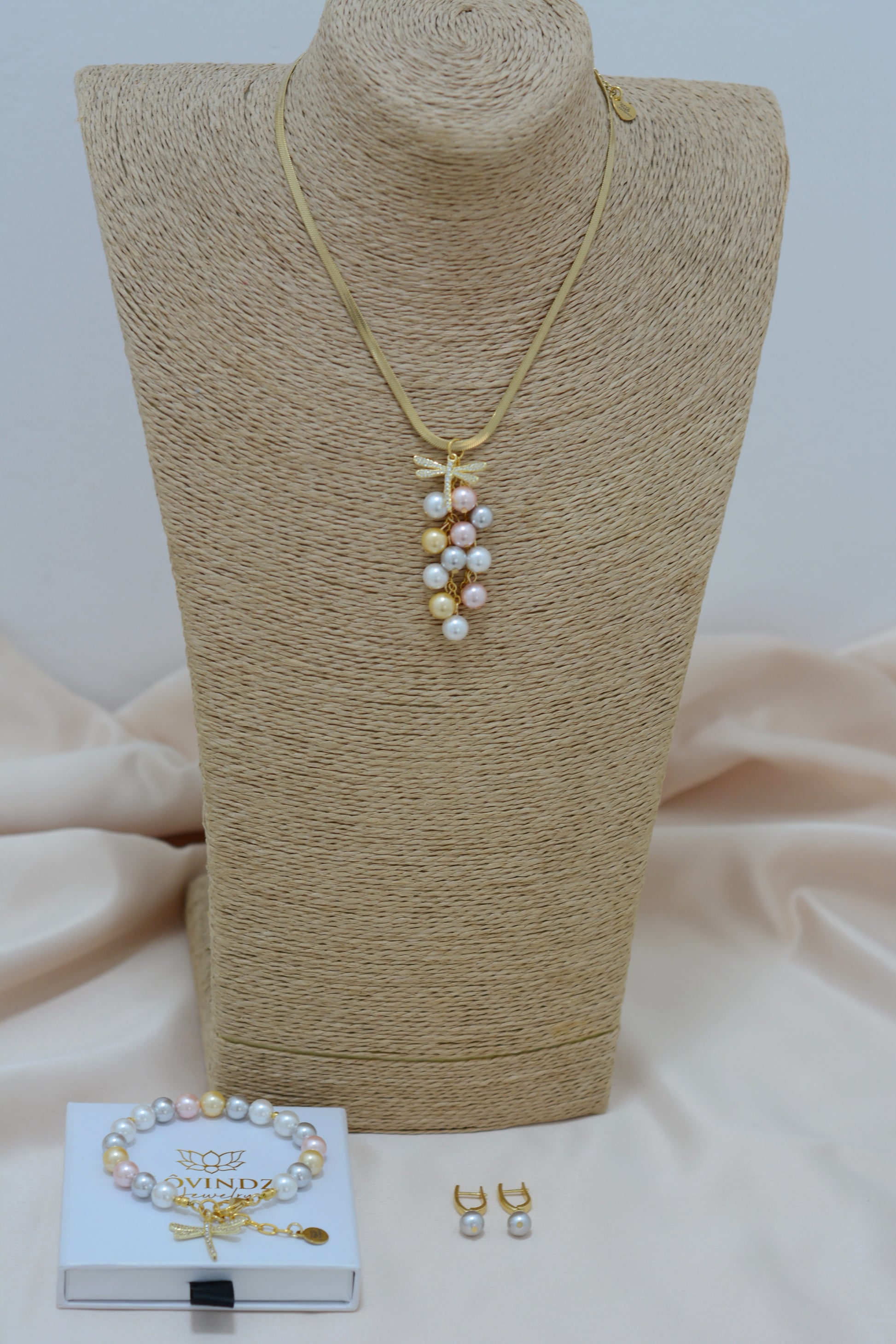 DESCRIPCIÒN Y MATERIAL: Collar hecho en cuentas de madre perla, zirconias, chapa de oro de 18 y 24 kilates,