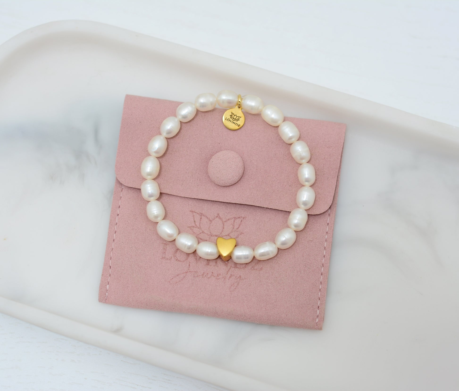 • DESCRIPCIÒN Y MATERIAL: Pulsera laborada en perlas de río calidad premium (AAA) y chapa de oro de 24 kilates.
