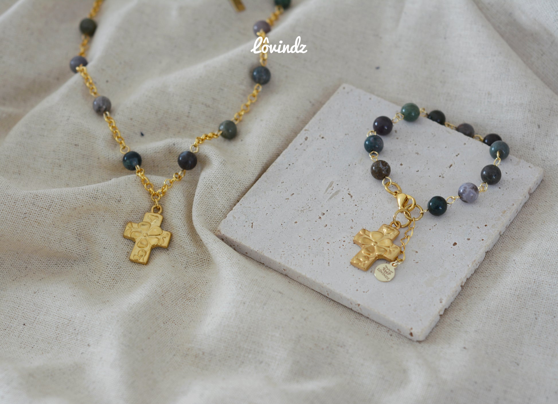 Pulsera hecha en piedra ágata de la india y Chapa de oro