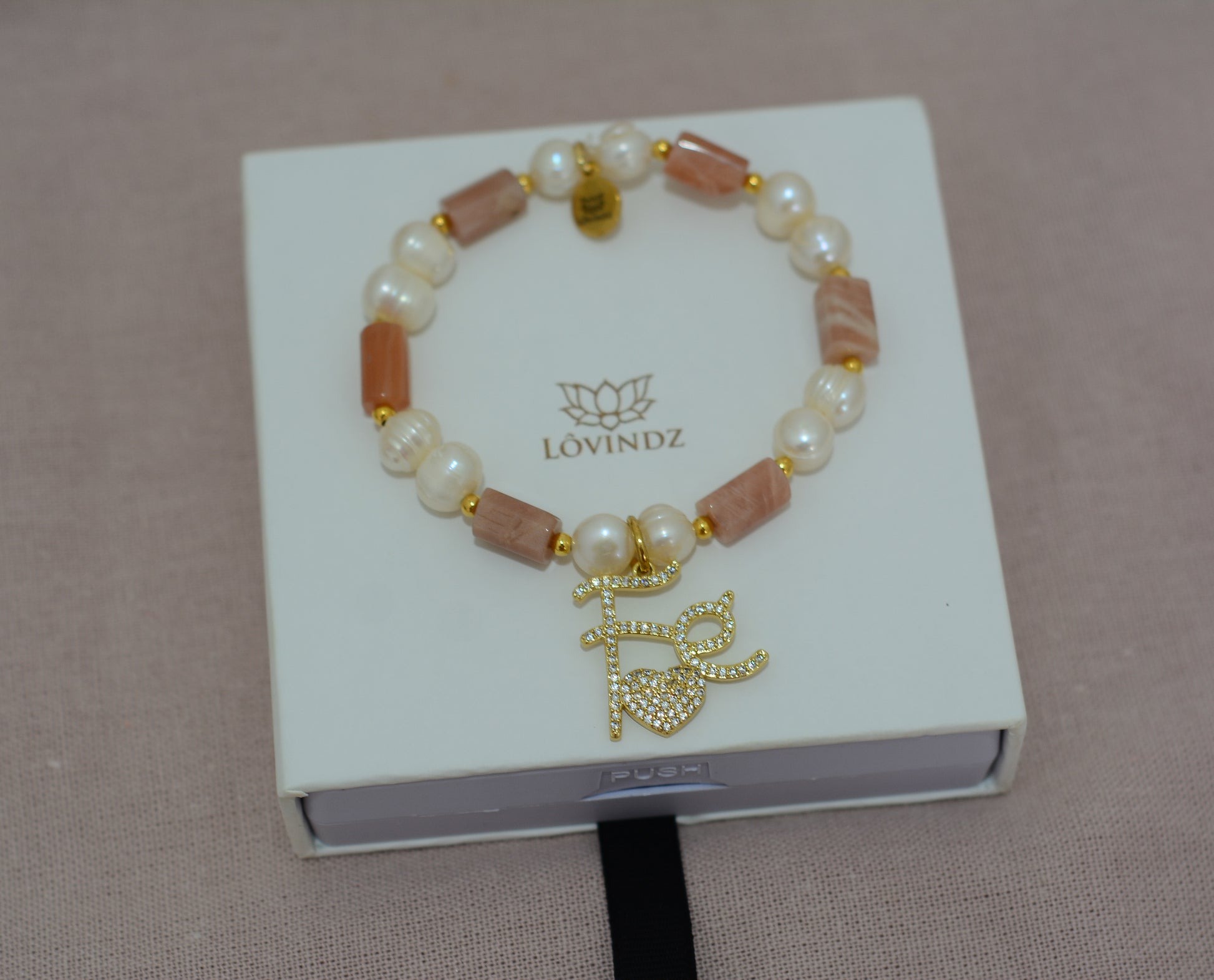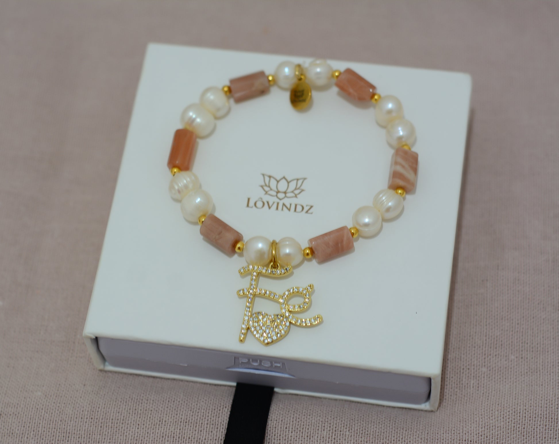 DESCRIPCIÓN: Pulsera hecha en piedra luna, perla de rio importada calidad AAA, zirconias, chapa de 24 y 18 kilates.