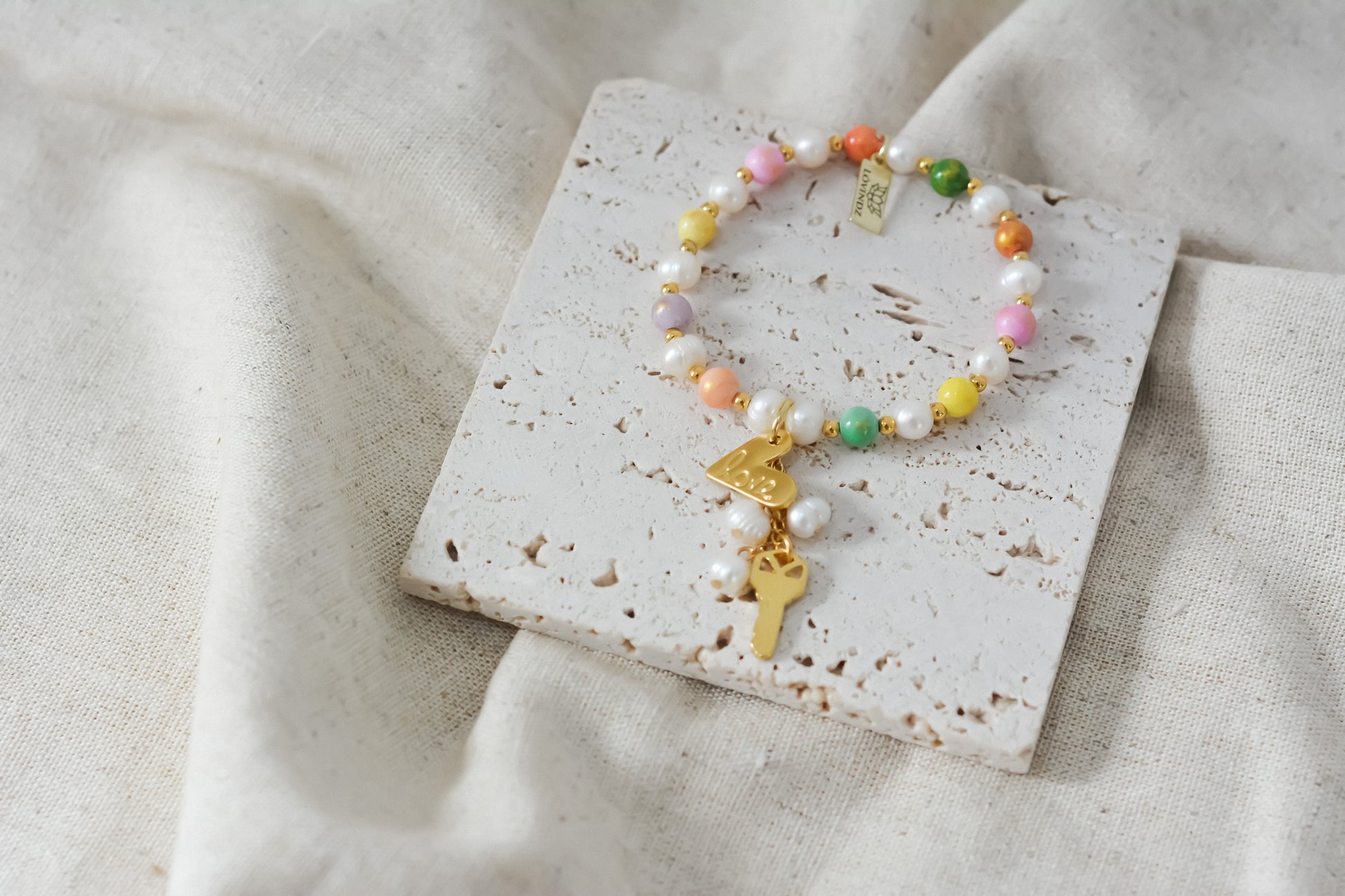 Pulsera hecha en chapa de oro de 24 kilates, cuentas de