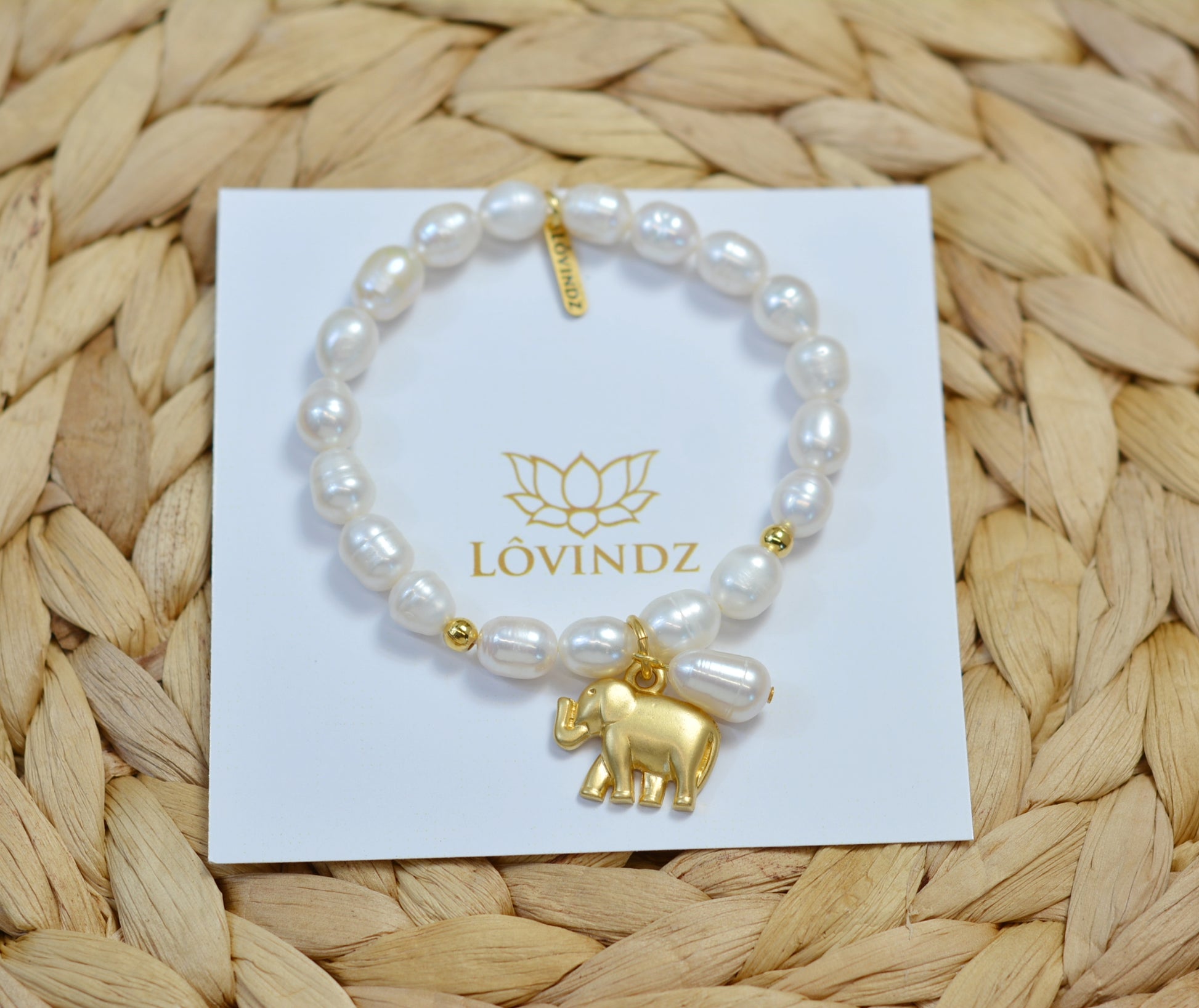 Pulsera hecha en perla de rio calidad AAA y chapa de oro de 24 kilates.