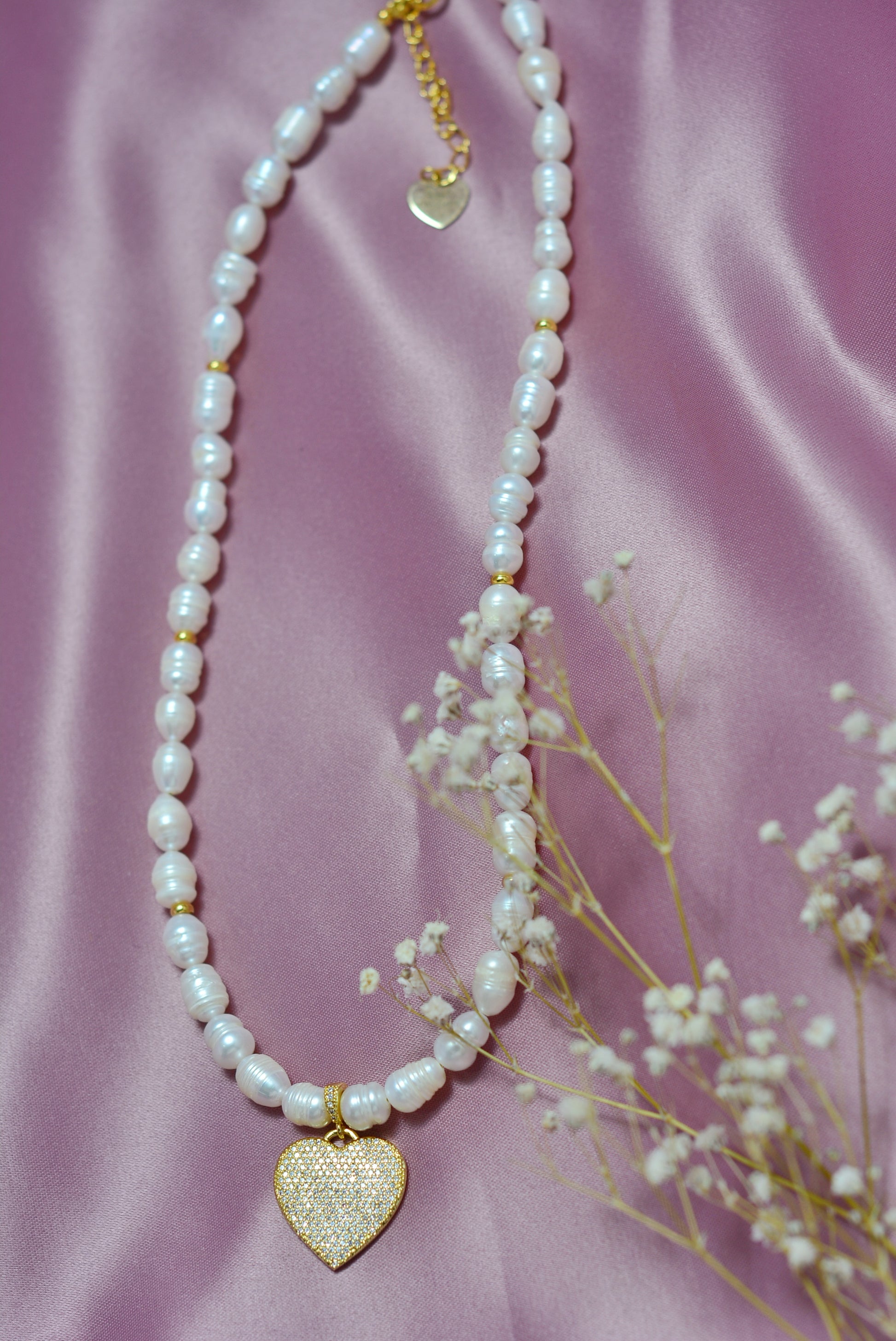 Collar 44 cm de largo, hecho en perla de río calidad AAA (premium) y minizirconias.