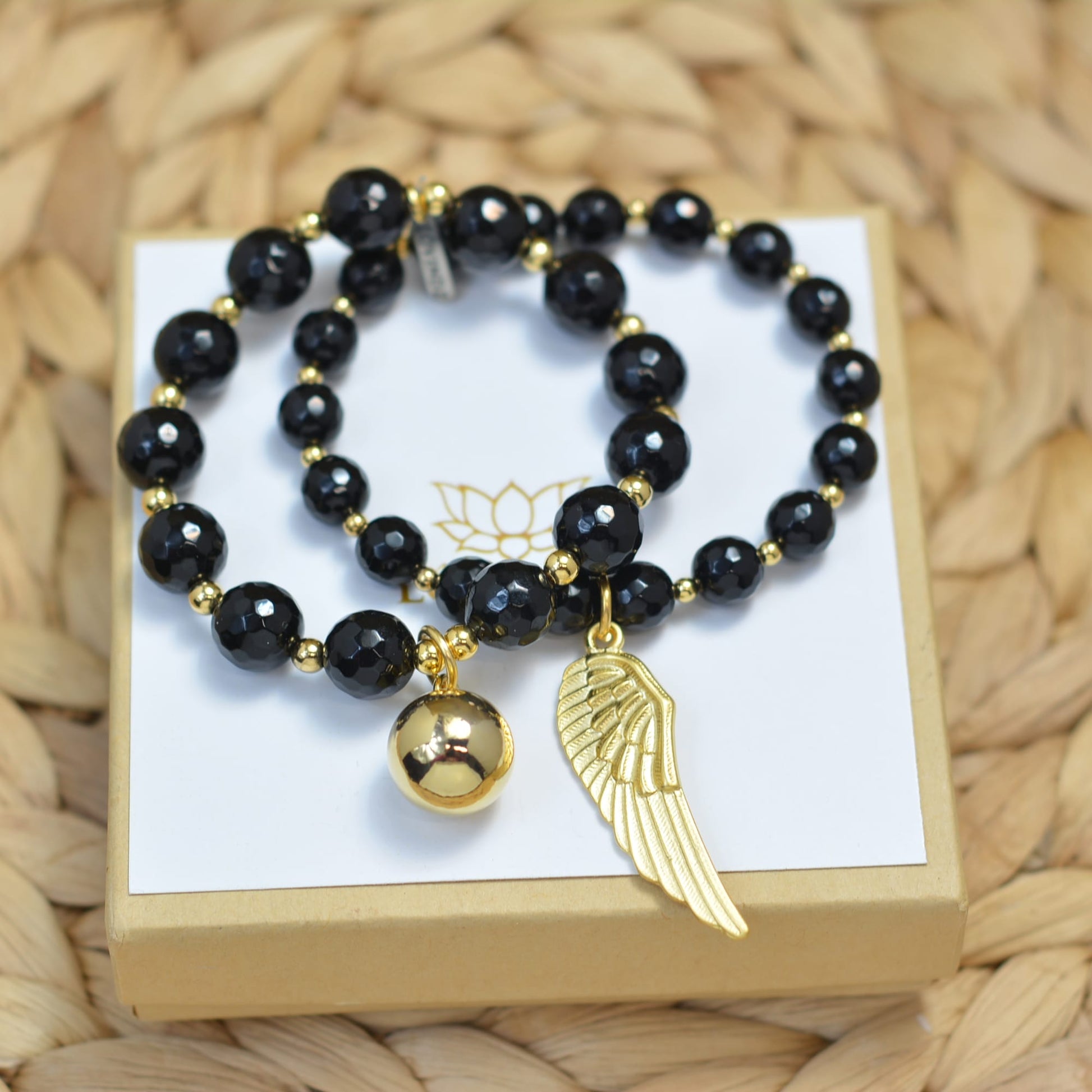 Juego de pulseras hechas en piedra ónix facetada y chapa de oro de 24 kilates.