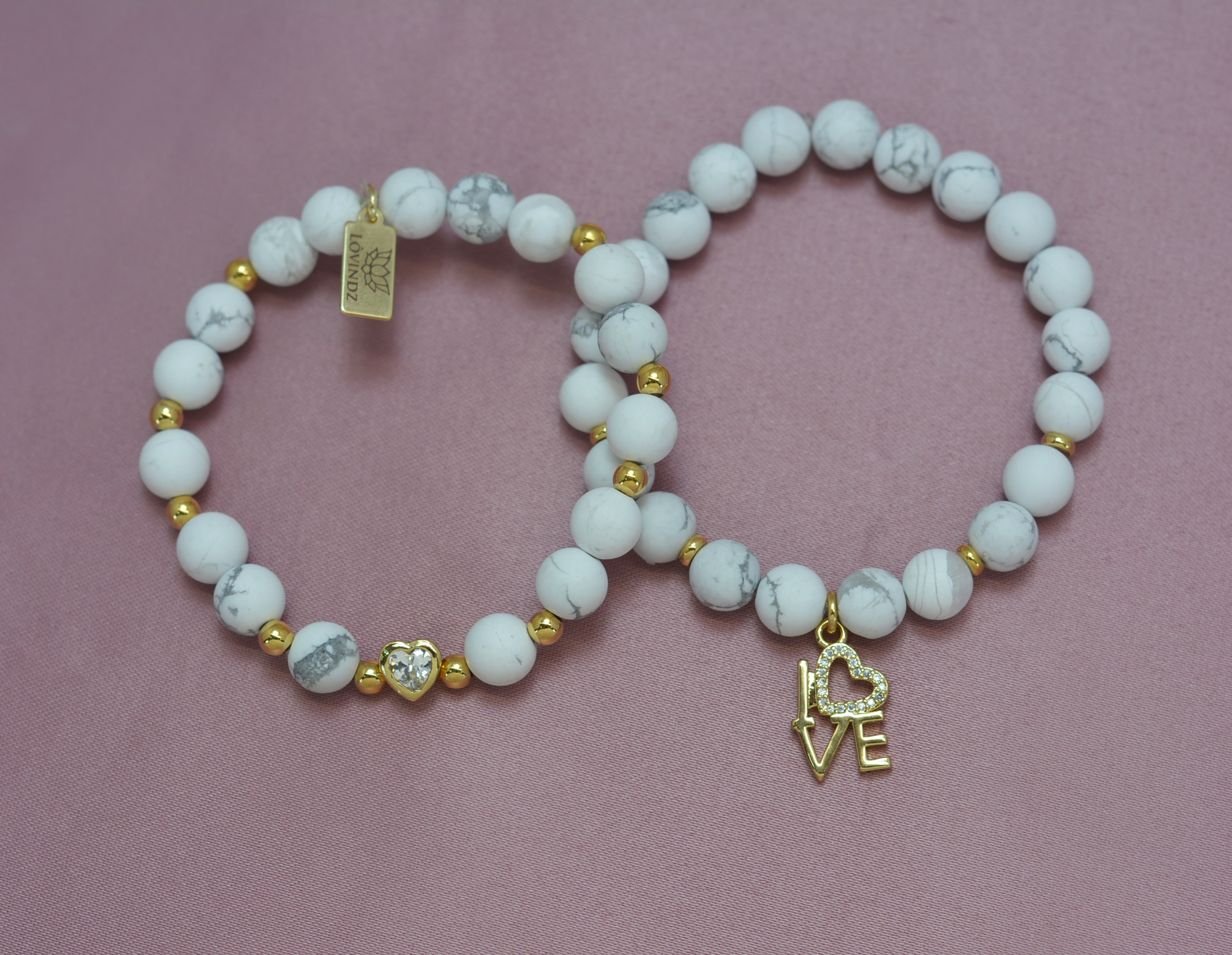 Juego de pulseras hechas en piedra howlita,